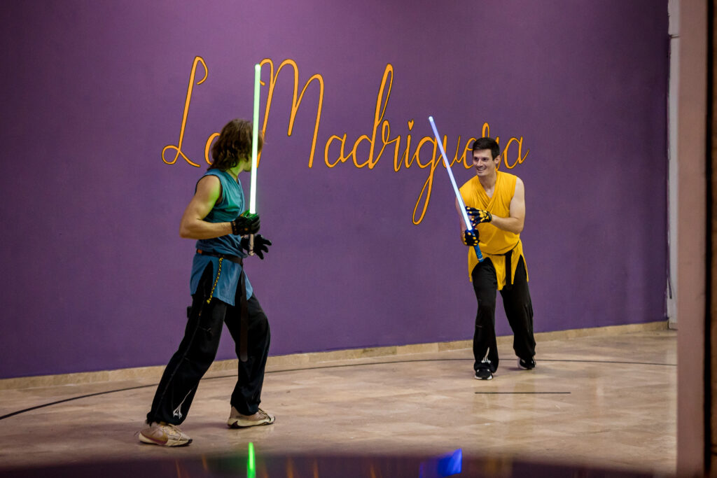 Se practica con un sable de luz seguro y homologado, en un ambiente inclusivo y respetuoso, donde cualquiera puede aprender sin importar su edad o experiencia previa.